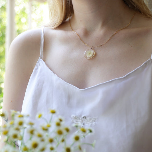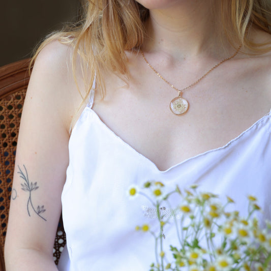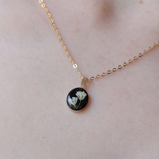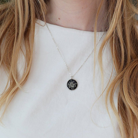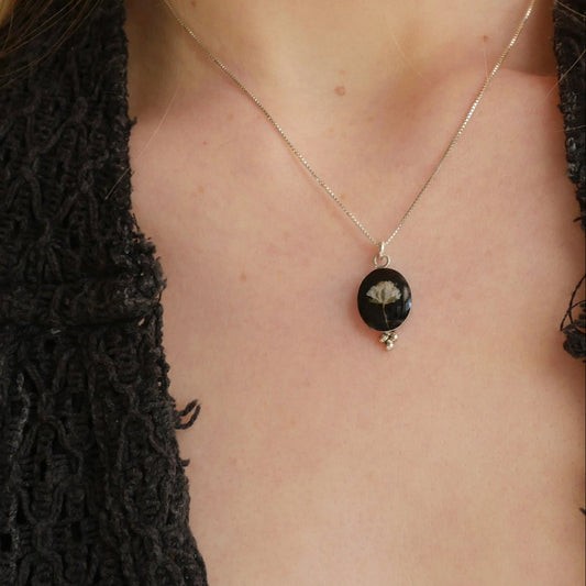 שרשרת עגולה שחורה עם פרח גזר קיפח