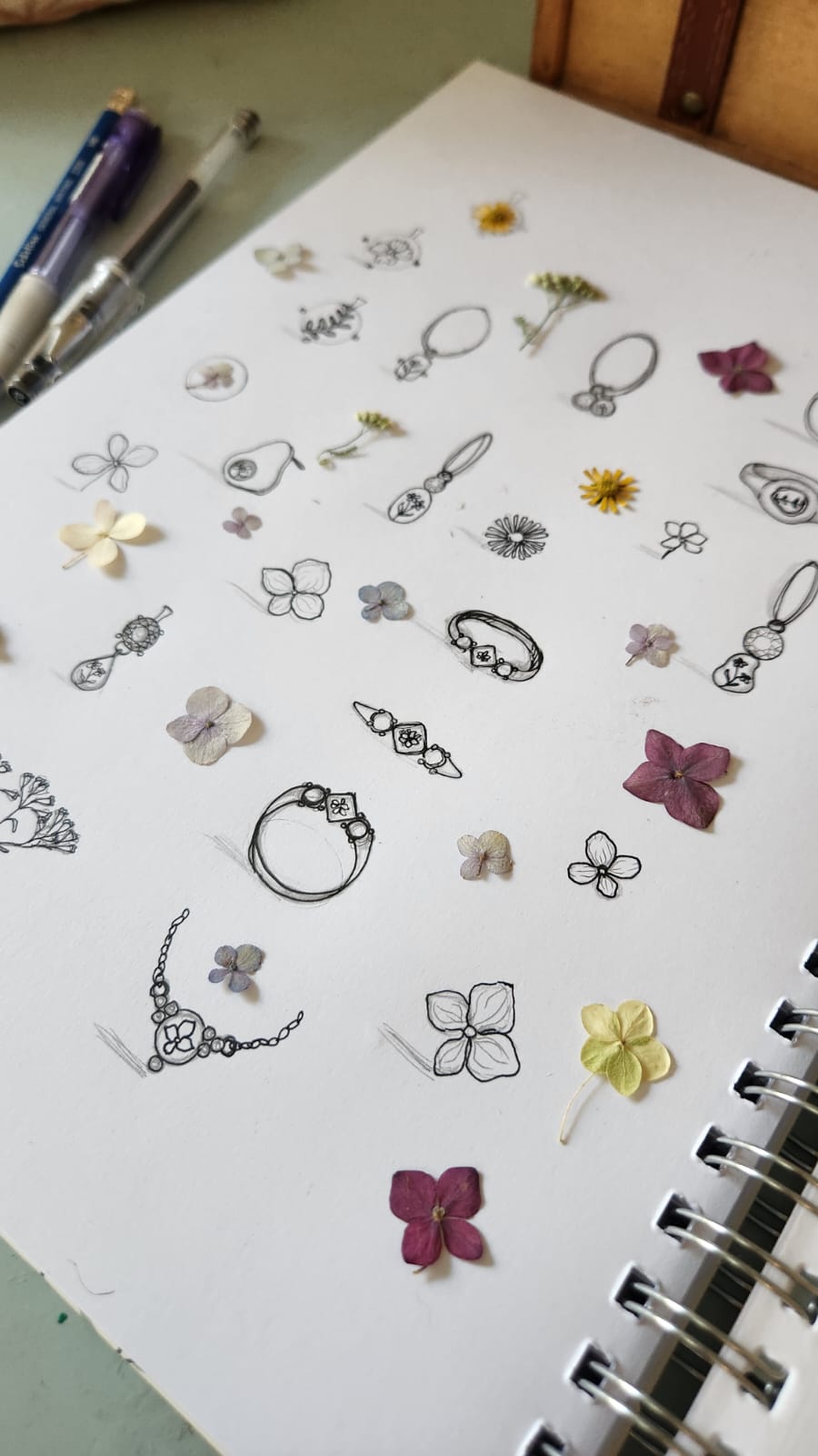 התכשיטים שלנו נועדו לשלב את יופיו של הטבע בחיי היומיום שלכם. כל פריט מציג את היופי העדין של צמחים אמיתיים אמיתיים, שנבחרו בקפידה הן מנופי פרחי בר והן מגינת הפרחים שלי, ונשמרו בטכניקות שונות
